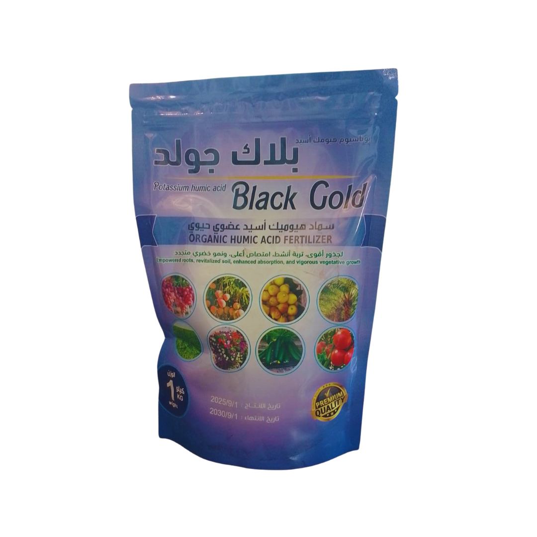 Potassium humic acid plays a vital role in stimulating root growth, improving water and nutrient retention, and supporting vigorous vegetative and reproductive growth. Black Gold is suitable for vegetables, fruits, flowers, ornamentals, lawns, trees, shrubs, and all garden plants, making it an ideal choice for organic farming, home gardening, and professional agriculture.