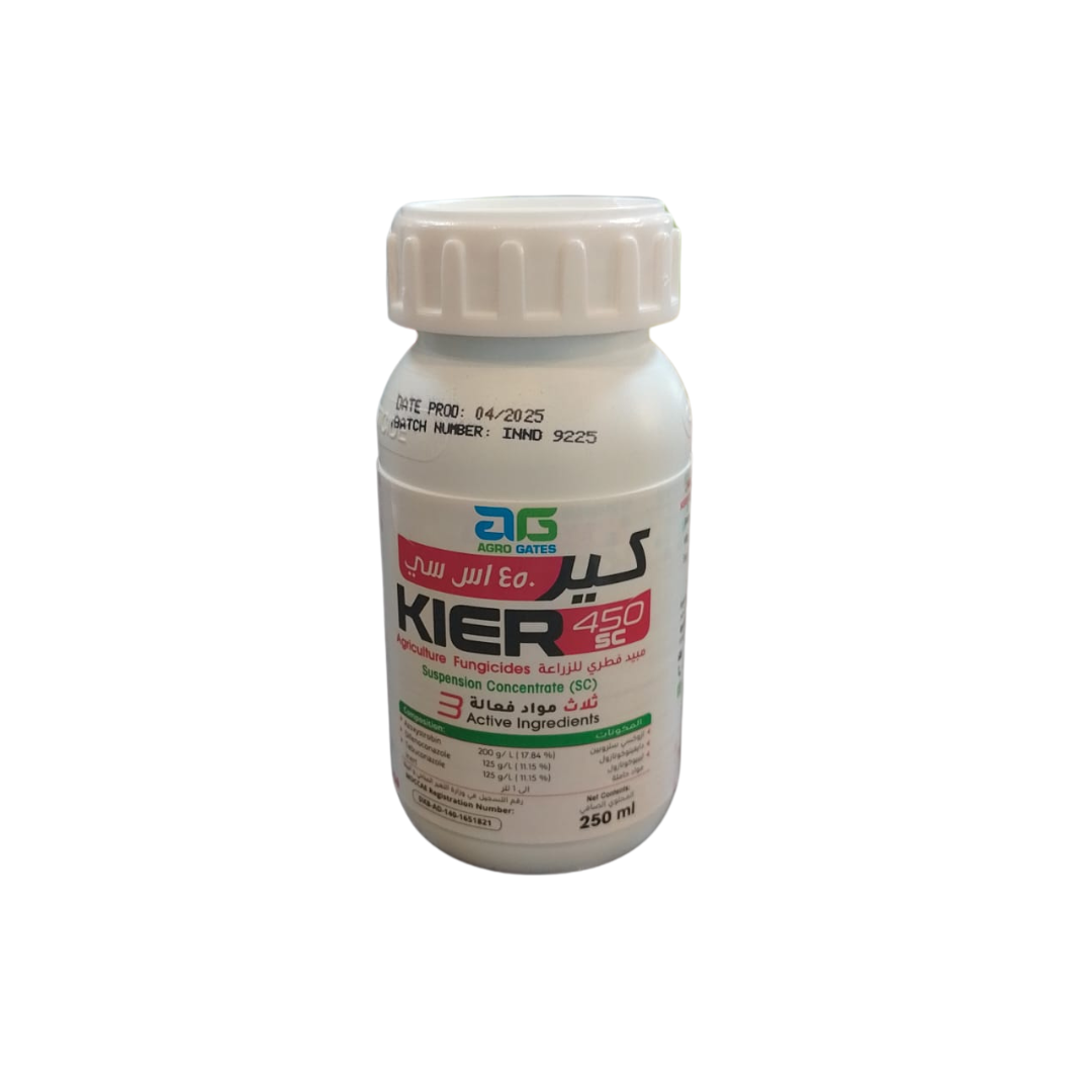 Protect your crops with KIER-450 SC 250 ml, a powerful agricultural fungicide formulated as a suspension concentrate for effective management of common plant diseases such as downy mildew, powdery mildew, leaf spots, blights, and other fungal pathogens. This professional-grade fungicide is suitable for use on a wide range of field, orchard, greenhouse, and garden crops — including vegetables, fruits, ornamentals and vines.