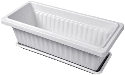 rectangular plastic planter, planter with tray, indoor outdoor planter, flower pots in UAE , herb planter, vegetable planter, white plastic planter, balcony garden pot, windowsill planter, patio planter, large plant pot, gardening accessories, modern planters, durable plastic pot, garden decor, home gardening essentials